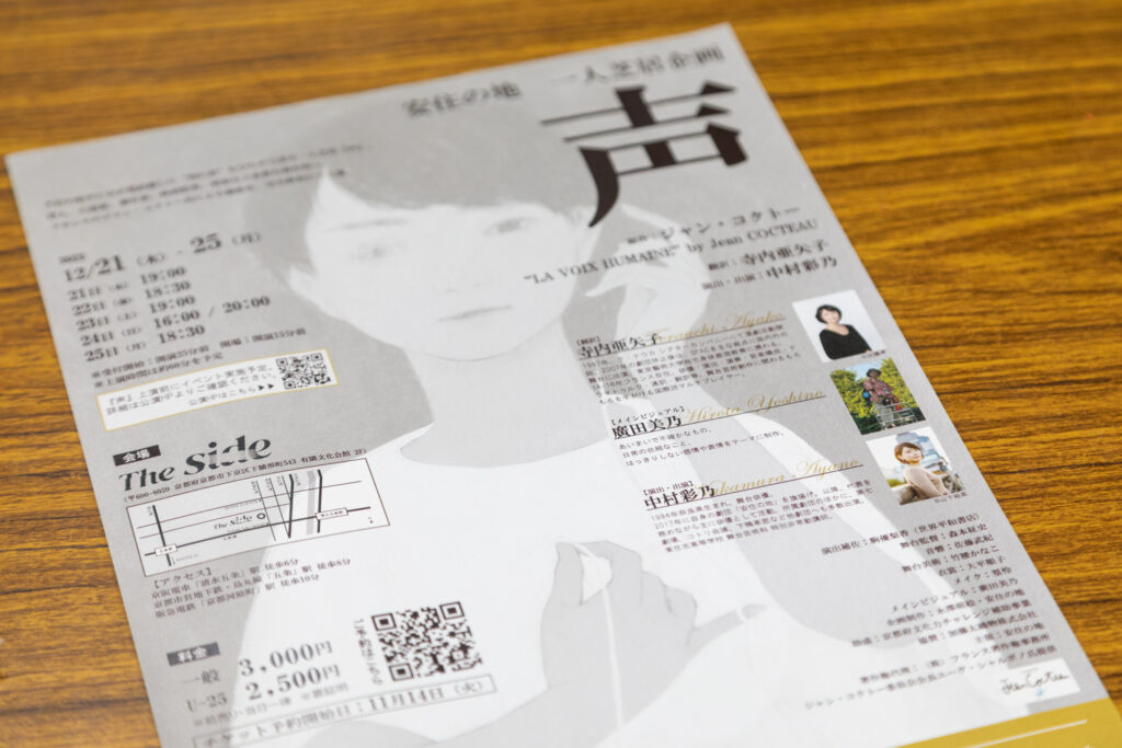 たまたまその作品の関係者からきたさんの作品のつくり方を聞く機会があり、真似をしてみようと思って試みたのが演出・出演を担当した『声』というジャン・コクトーの一人芝居です。きたさんは創作段階で勉強会をしっかり行っておられるということで、『声』ではSPACの寺内亜矢子さんに翻訳だけでなく勉強会の講師も依頼しました。フランス文化からはじまり、フランスではこの戯曲はどう使われているのかといった事例などを幅広く教えていただき、これもまた衝撃で、自分がいかに何も知らないかということに気がつきました。それは勉強会の内容も、勉強会から作品を立ち上げるというきたさんの方法も、「自分もできると思っていたのにこんなにできない」という無力さを感じずにはいられなかった。